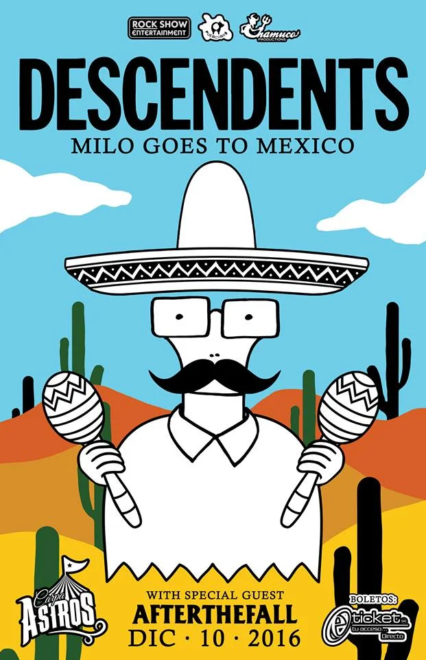 The Descendents es una de las bandas de punk californiano que desde los noventa había esperado arribar a la Ciudad de México y finalmente la cita ha llegado. En una presentación auspiciada por Chamuco y Rock Show, esta banda vendrá a este país para ofrecer una fecha única en la Carpa Astros debido al regreso que tuvieron a los escenarios en este 2016 por su reciente material de larga duración “Hypercaffium Spazzinate” el próximo Sábado 10 de diciembre a partir de las ocho de la noche, junto a la banda Afterthefall. Los boletos se encuentran a la venta en el Sistema E-Ticket, Tienda Primario y sin cargos en taquillas del inmueble.
