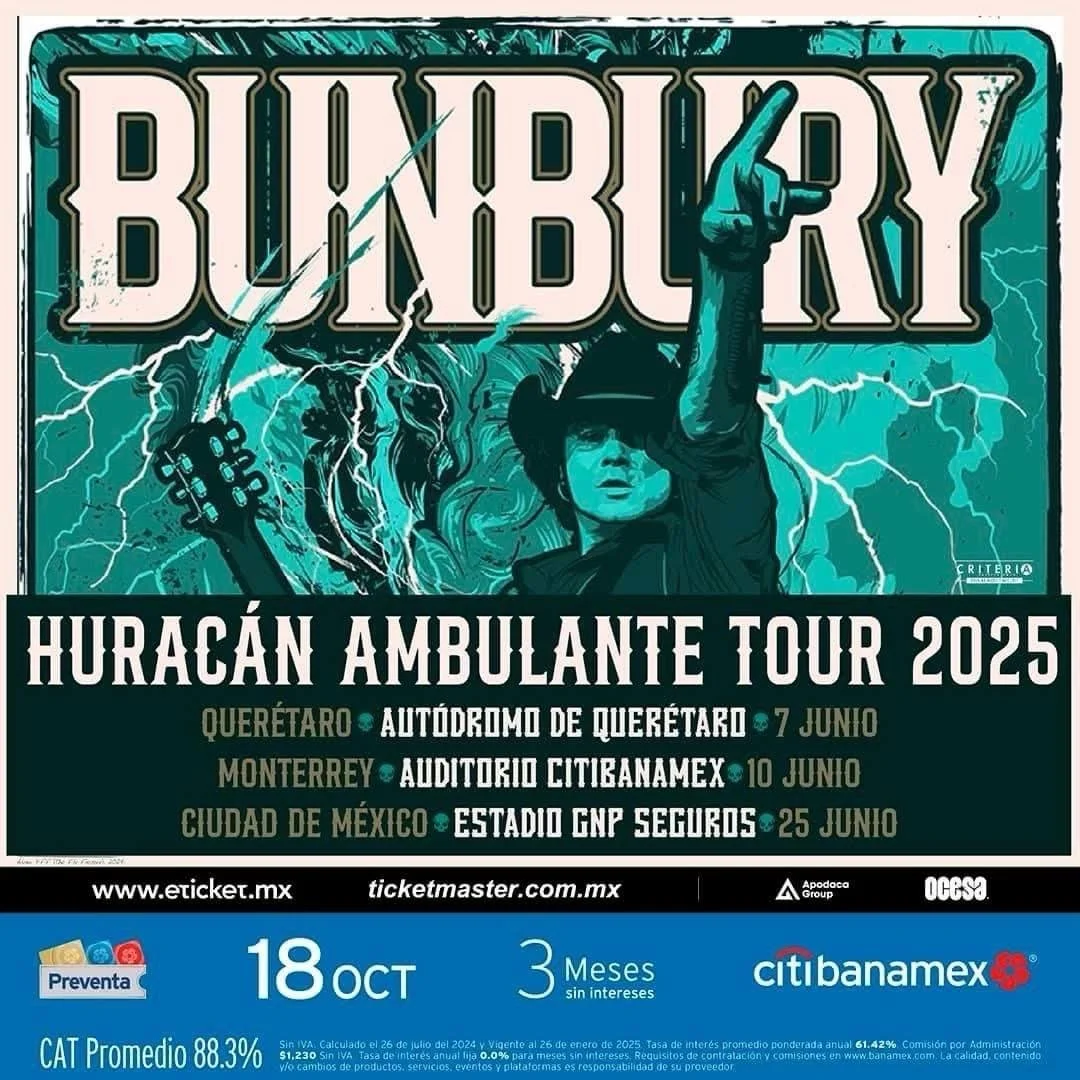 BUNBURY traerá el Huracán Ambulante Tour 2025 a Querétaro, Monterrey y Ciudad de México.🌪️🎸💥