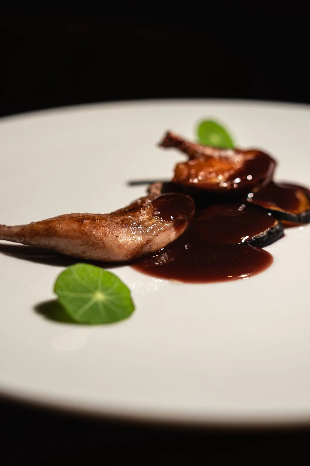 Llegan entonces los agnolotti del plin, un clásico piamontés que se sirve aquí con respeto y suavidad, seguidos por una codorniz bañada en salsa de vino tinto, ajo negro e higo: un platillo con cuerpo, perfecto para cerrar la parte salada del menú.