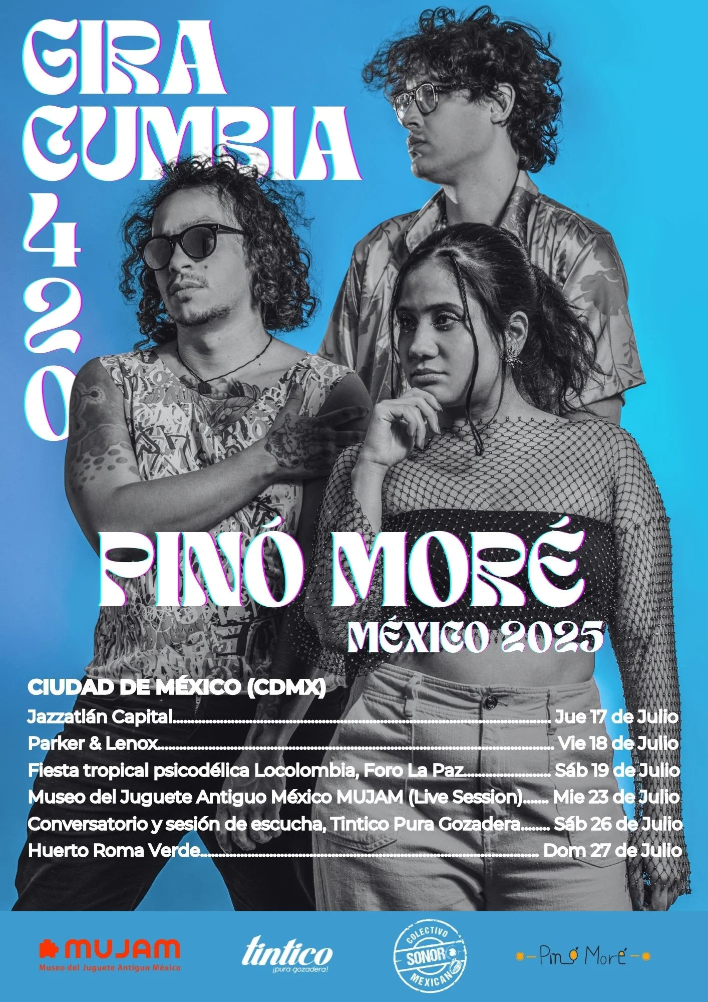 La gira Pinó Moré 420 Colombia-México tendrá como epicentro la Ciudad de México, con una serie de presentaciones y talleres que se desarrollarán entre el 16 y el 27 de julio. Los talleres, en específico, forman parte de una coproducción con el Museo del Juguete Antiguo México (MUJAM), y contarán con la participación especial de músicos oaxaqueños, como el trompetista Ayuuk Benjamín Kumantuk, quien dirigirá una sección de metales que se sumará a la agrupación colombiana para algunos de los conciertos. Esta colaboración subraya el espíritu de la gira: un ejercicio de encuentro entre tradiciones vivas, regiones con identidad musical propia y artistas que entienden la música como un canal de transmisión directa.